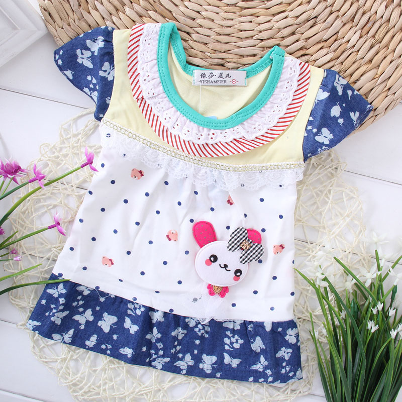 童t恤 夏季短袖女童全棉T恤 卡通圖案點子小兔子小童t恤 韓版童裝