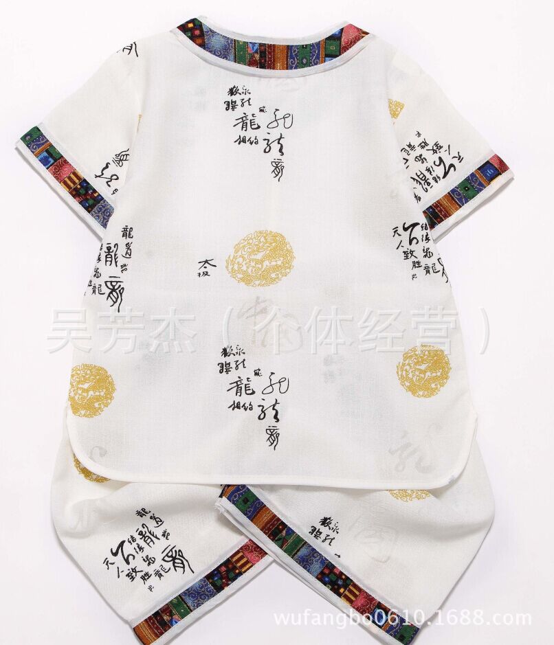 男童夏季唐裝/民族中式功夫表演服/棉麻短袖套裝演出服舞臺服