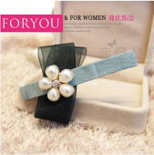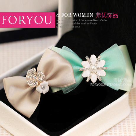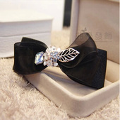 弗優飾品 韓版蝴蝶結發飾批發 美版厚緞帶 合金水鉆頭花 廠家直銷¥7.20