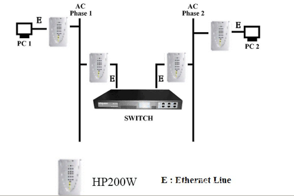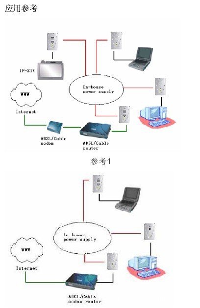 This adapter can provide the transmission of broadband data service via power line, which are suitable for use in a wide range of both residential (in-home) and commercial (offices, apartments, hotels, warehouses) network applications in which existing power lines can be utilized. There is never any need to install new wires. These adapters enable the effortless creation of a high-speed network that supports video, voice and data.