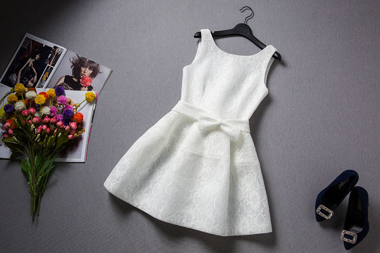 批發2014秋裝新品LAH012氣質蝴蝶結腰帶蕾絲無袖蓬蓬裙