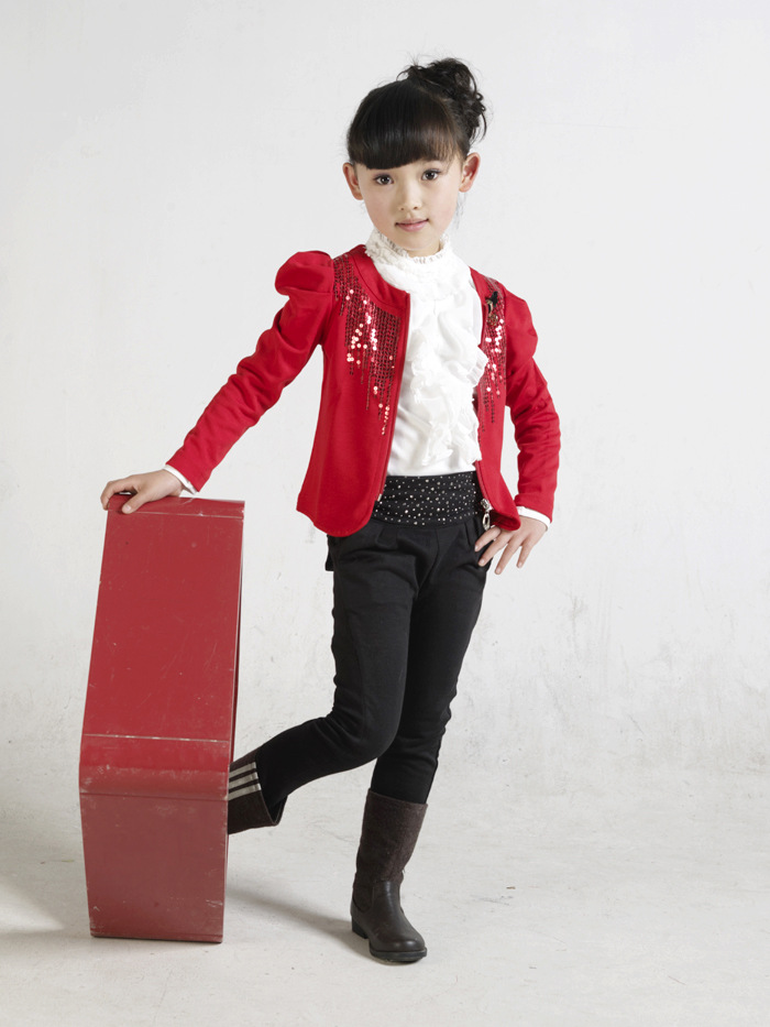 童裝批發】秋裝韓版 秋款時尚亮片女童西裝褲子打底襯衣三件套