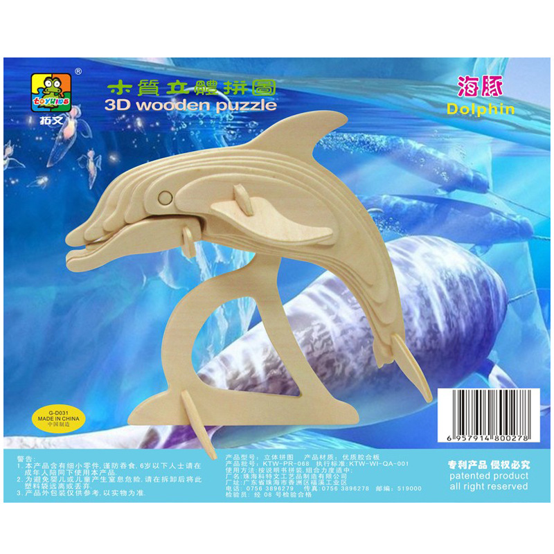 拓文木制拼圖/拼板/兒童益智玩具 3D立體仿真模型 DIY 海豚