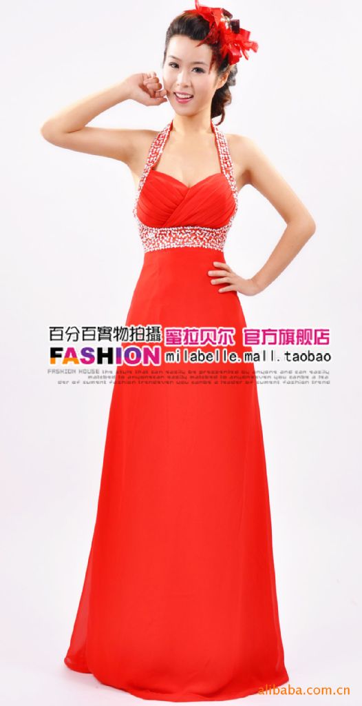 廠家直銷 新款上架-掛脖式高貴典雅新娘婚紗禮服 晚禮服