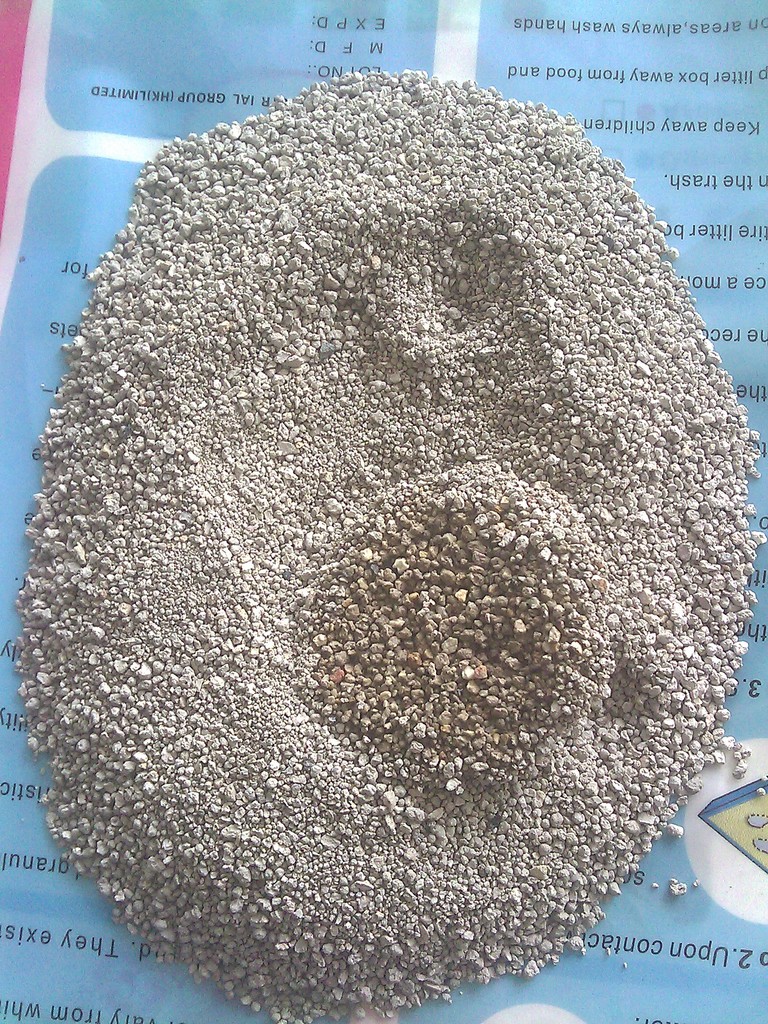 材質:結團貓砂也叫可凝結貓砂(Clumping Litter)。特性:此種貓砂遇水既凝結。當貓咪方便后,膨潤土吸收了尿液,會凝結成一個土塊,方便鏟除尿塊和糞便。