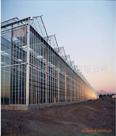 LBRRRW96型玻璃溫室:溫室結構形式為天溝連接多跨連棟VENLO型兩屋脊結構.溫室屋面設計傾斜角度為20度,溫室框架結構主要由基礎,立柱,天溝,鋁合金檁條,門,電動間斷式天窗等部件組成.