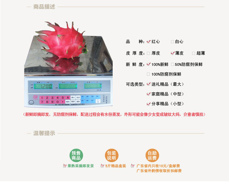 醇凈無公害綠色火果龍個個都是挑選精品,5斤/盒,分三個檔次的禮盒裝:
