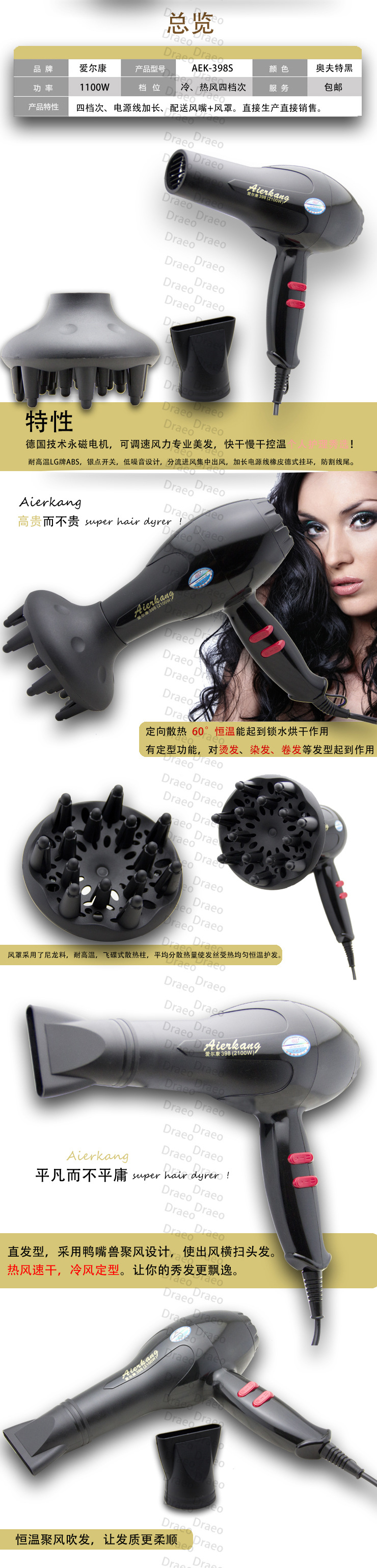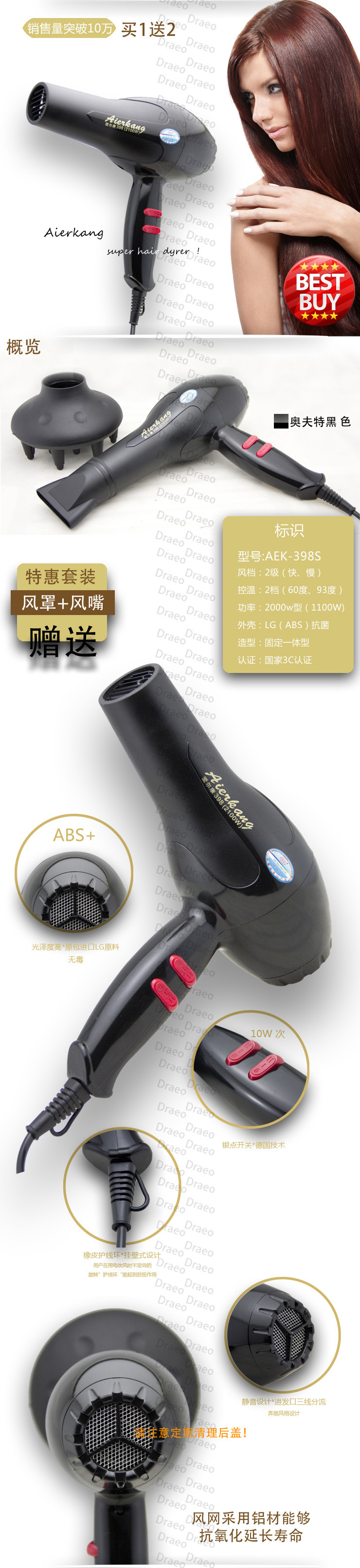 廠家直銷愛爾康吹風淘寶熱銷電吹風398X 配送風嘴風罩