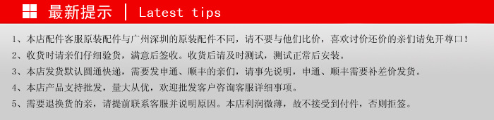 退換貨須知:請賣家必須在簽收后七天之內(如有特殊情況及時聯系賣家)測試產品好壞,如有質量問題速與本店聯系,經本店確認故障屬實后可以免費退換貨。七天之內,如有非人為故障,可以換貨,但必須由買家承擔往返郵費。因為產品利微小。退換貨須保證產品沒有任何損毀,否則不給予退換。簽收之后確定產品無誤,3天內請登錄阿里巴巴確認收貨,不確認收貨的我們視為放棄一切售后服務!不同意此售后服務規定者,請勿購買!