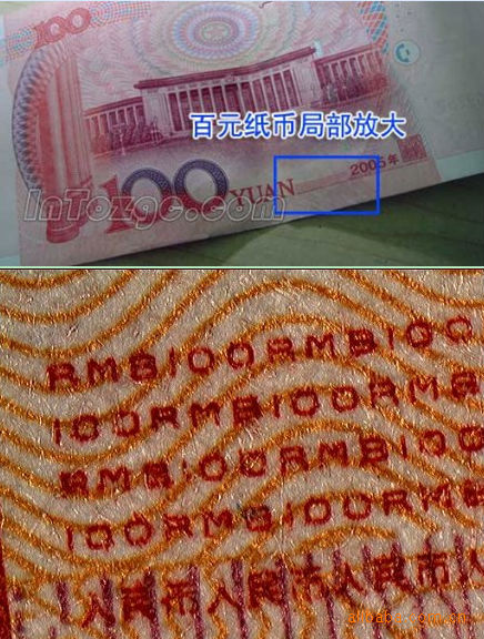 每天都在花錢,從來沒仔細觀察過百元大鈔,拿到顯微鏡下看看這東西的印刷精度真是高得恐怖,你注意過背面這行小字嗎。能看見里面“100RMB”字樣嗎?