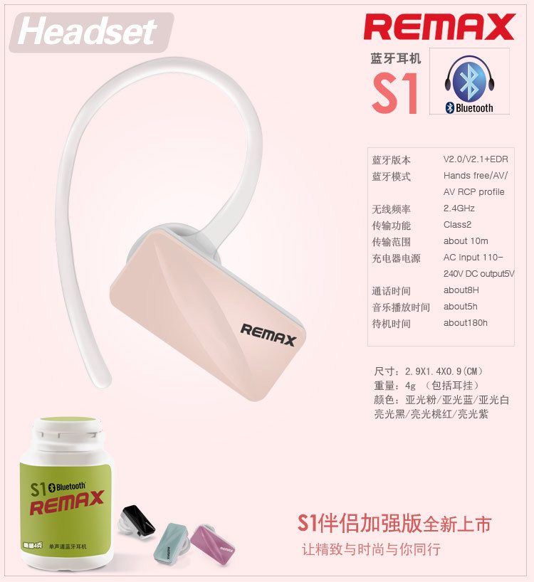 REMAX 藍牙 耳機 蘋果4代 HTC 單聲道手機通用 安卓/諾基亞可聽歌