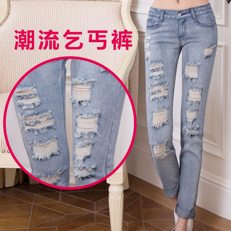 T0138#夏裝新款2014歐洲站破洞直筒休閑牛仔褲九分褲女乞丐褲