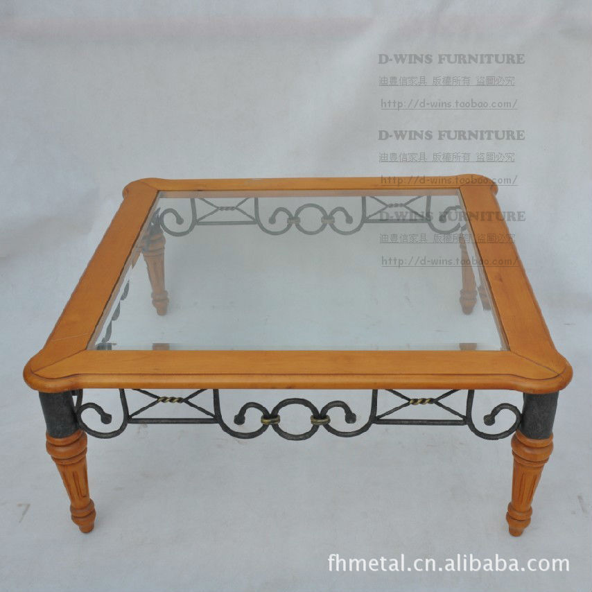 迪豐信供應實木玻璃茶幾美式鐵藝茶幾 大方幾