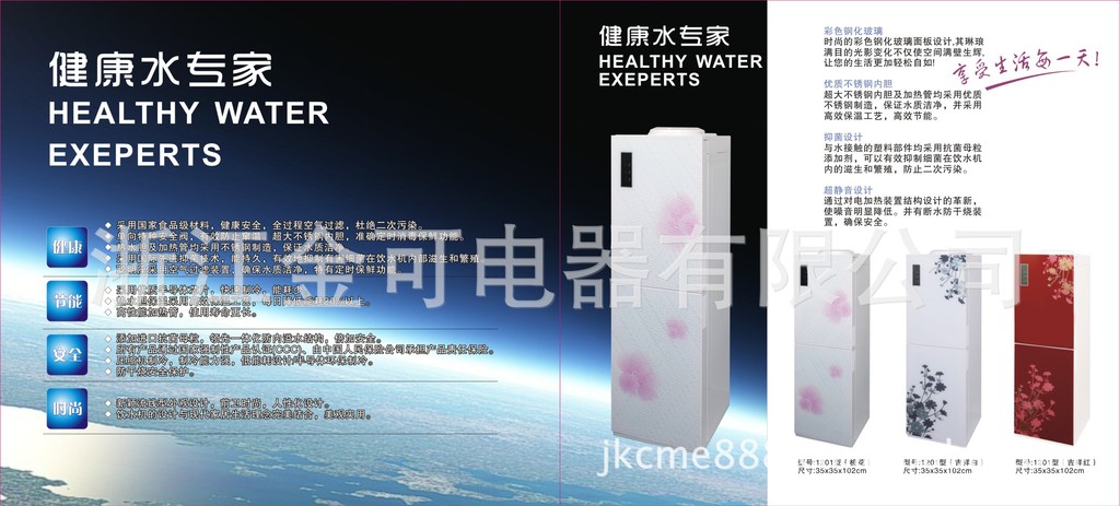本公司生產的豪華型系列飲水機是運用冰箱美觀大方的造型藝術和先進的制冷技術,引用微電腦控制溫度和電磁閥控制水流量手段。其外觀大方簡潔,技術先進,工藝精湛,倡導現代生活,裝點時尚空間,引領時代潮流。