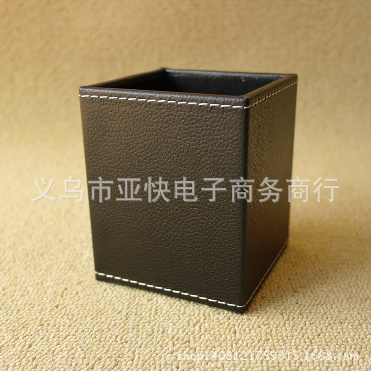 PU皮革筆筒 方形桌面收納禮品筆插 木板內胚 時尚創意仿皮筆座