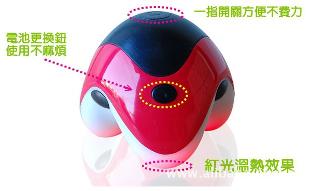 可按[mo]部位:頭、頸、肩、背、腹、手、腳、腿、面部均可使用。使用簡單方便,當按[mo]器運動時,按[mo]球會發出七彩的光芒。