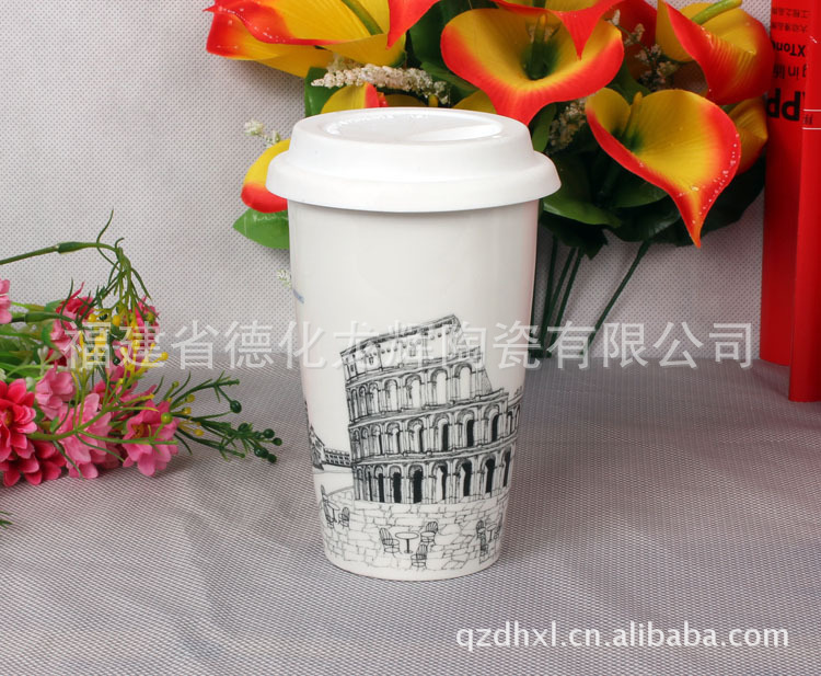 陶瓷星巴克杯 雙層陶瓷杯 陶瓷隨手杯 辦公杯 杯子批發 logo定做