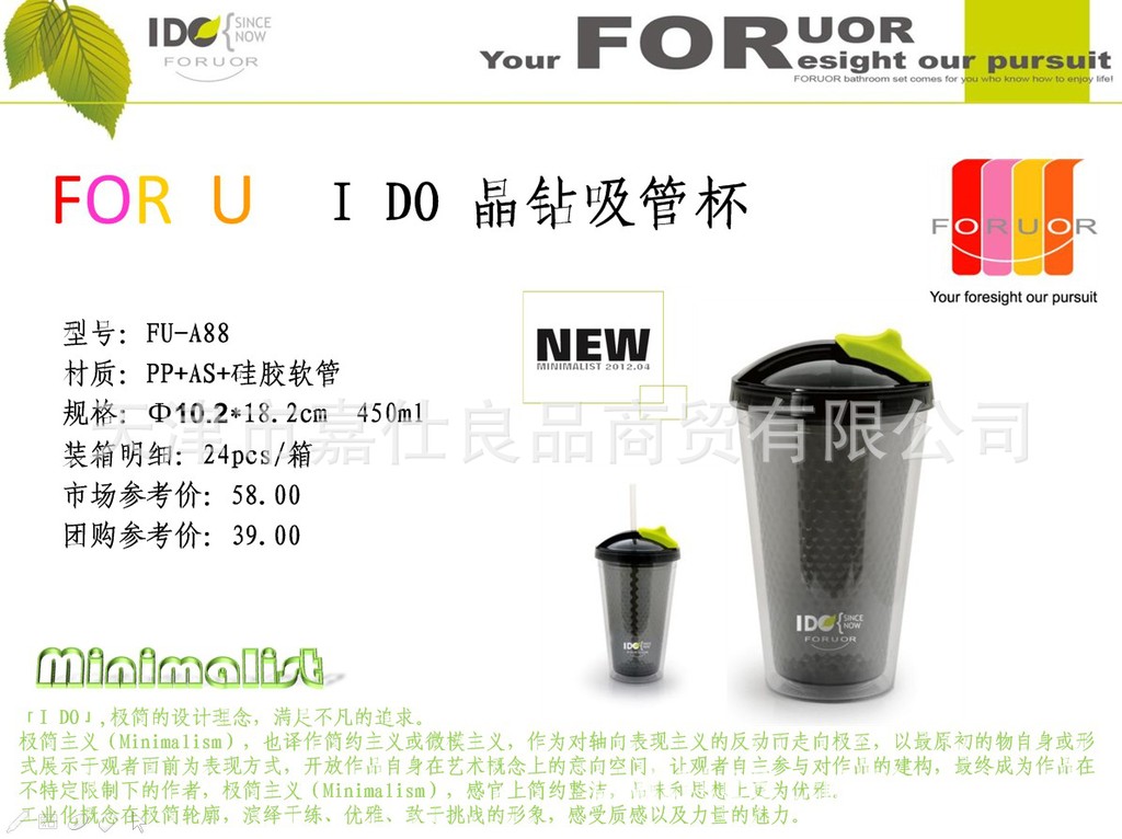 FOR U I DO 晶鉆吸管杯 FU-A88 PP AS 硅膠軟管 正品保障