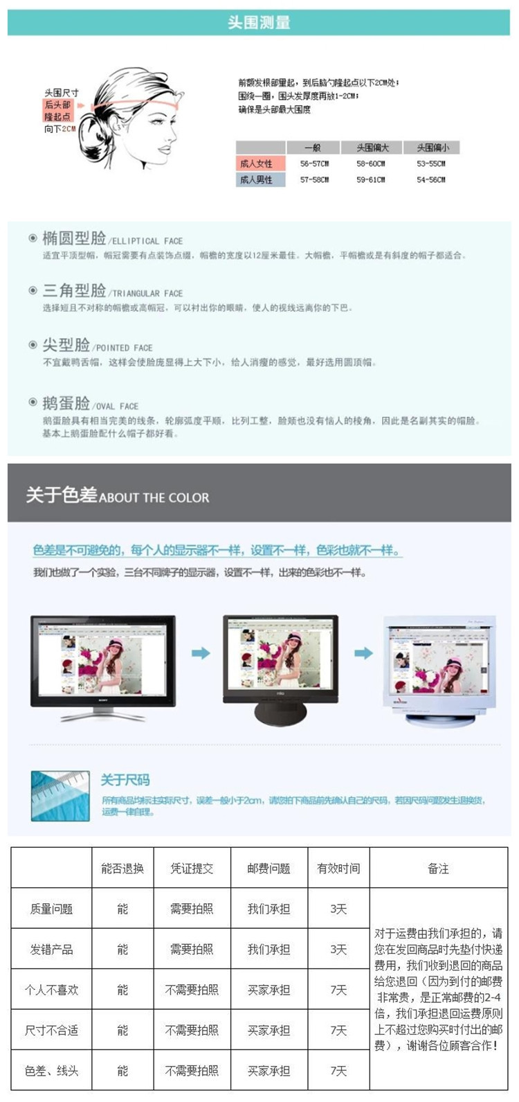 溫馨提示:產品尺寸都是手工測量,由于每個人的測量方法和量具不同,有些許誤差屬正?,F象,但我們保證會在1-2cm之間,請放心購買!由于拍攝光線、角度和顯示器參數設置不同,色差是無法避免的,接受者拍哦!