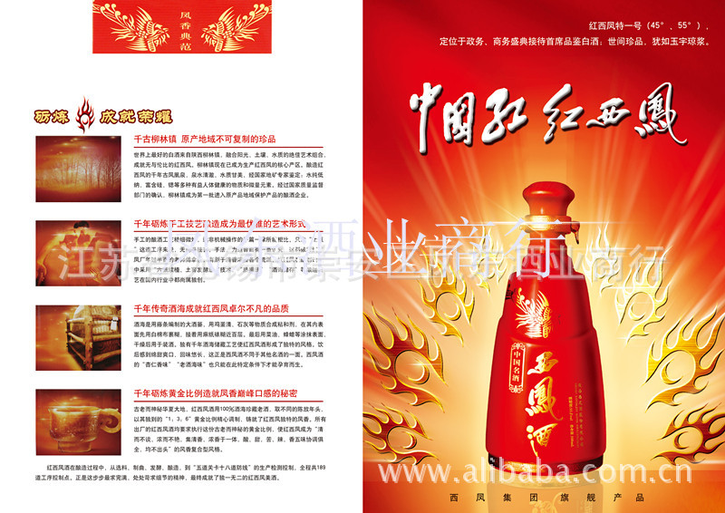 55度中國紅西鳳酒是度西鳳酒集團推出的一款代表西鳳酒高端釀造水平的新西鳳酒,是西鳳酒集團的旗艦主力產品。中國紅紅西鳳酒適合作為高檔禮品饋贈貴賓;好友聚會;高檔政務、商務宴會;高規格婚慶宴會等高檔場合飲用,因其特有的身份定位和精美的包裝,也是酒類收藏的佳品。