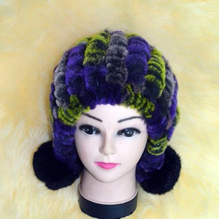 2013年冬季新款女獺兔毛三個球皮草裘皮帽子批發 沃源皮草
