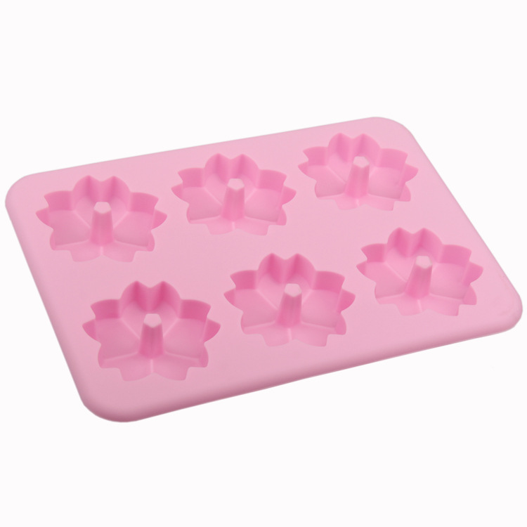 環保硅膠 6合1櫻花形 甜甜圈蛋糕模 六孔連體點心模