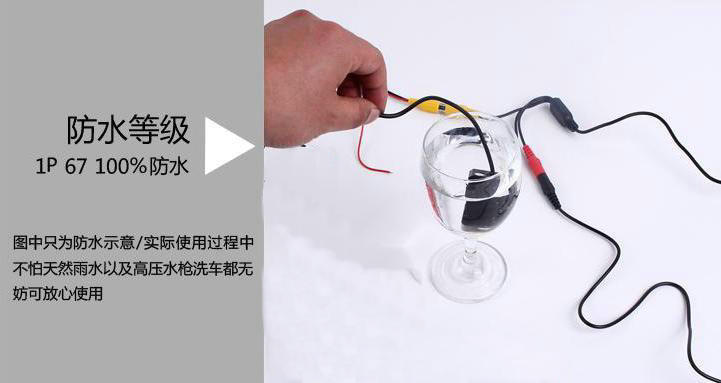 5.5M視頻線 1M電源線電源:DC12V制式:PAL/NTSC2路視頻輸入,倒車優先攝像頭防水等級:IP68防水設計,經嚴格浸水測試