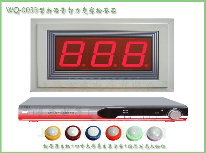 萬慶電子003B型智力競賽搶答器廣泛適用于學校,教育部門,企事業工會組織,黨團委,俱樂部等舉辦各種知識,技術競賽和文娛活動,是本公司推出的產品.該產品性能穩定,技術先進,質量可靠.具有以下特點: