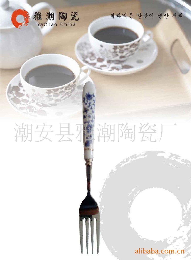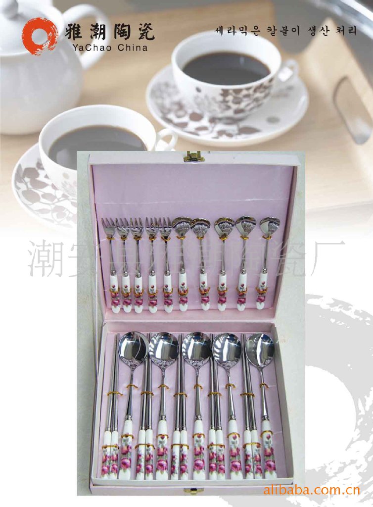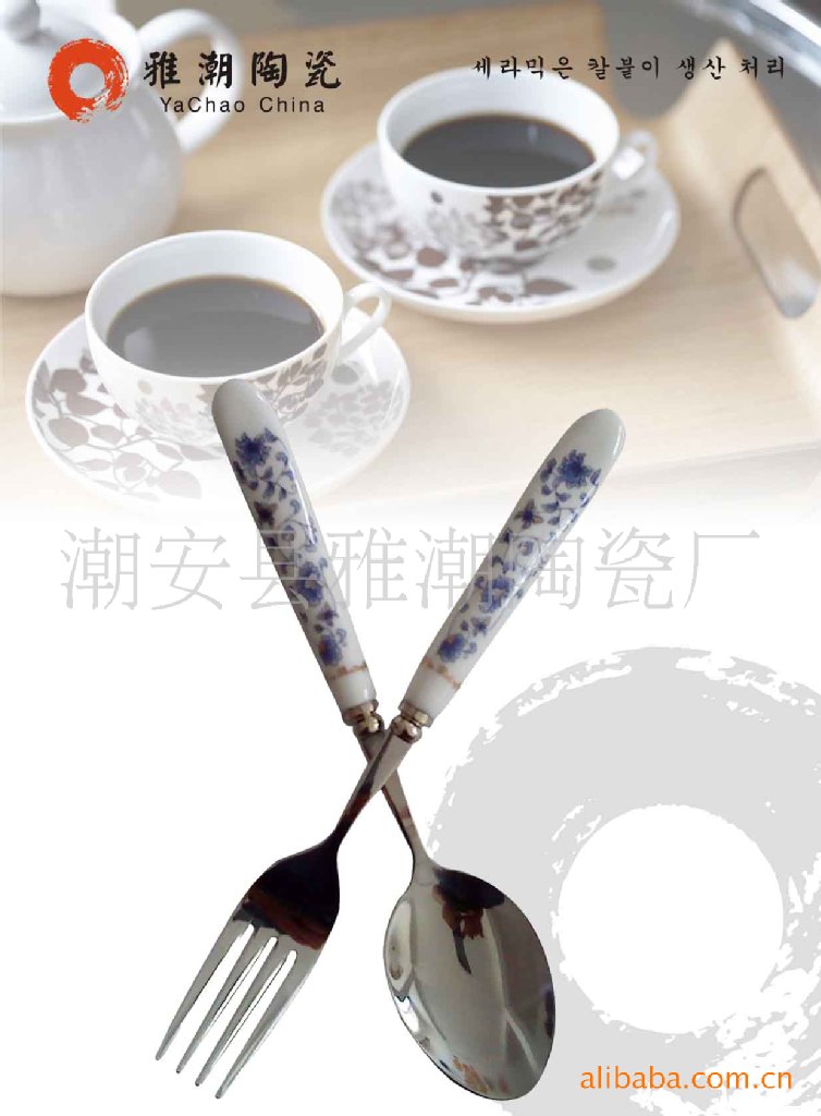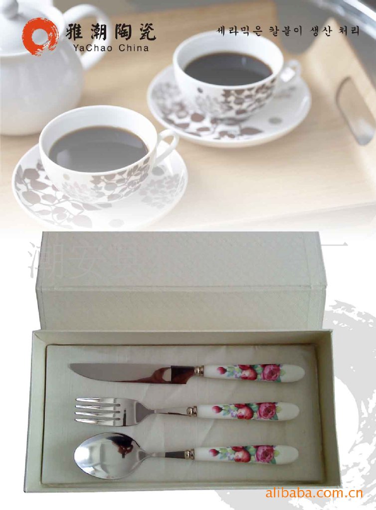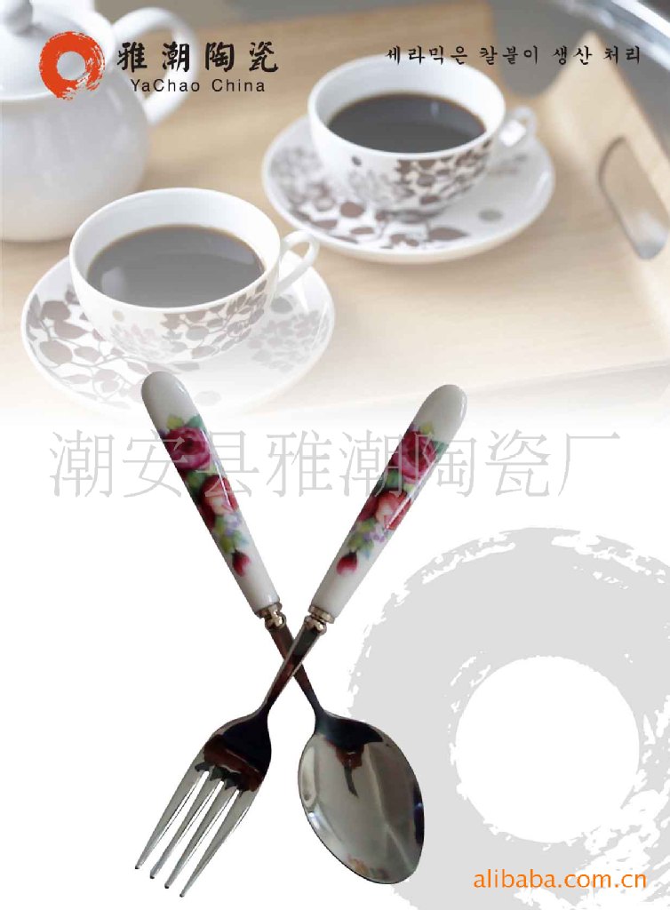 精品陶瓷柄餐具刀叉勺 陶瓷柄不銹鋼餐具勺