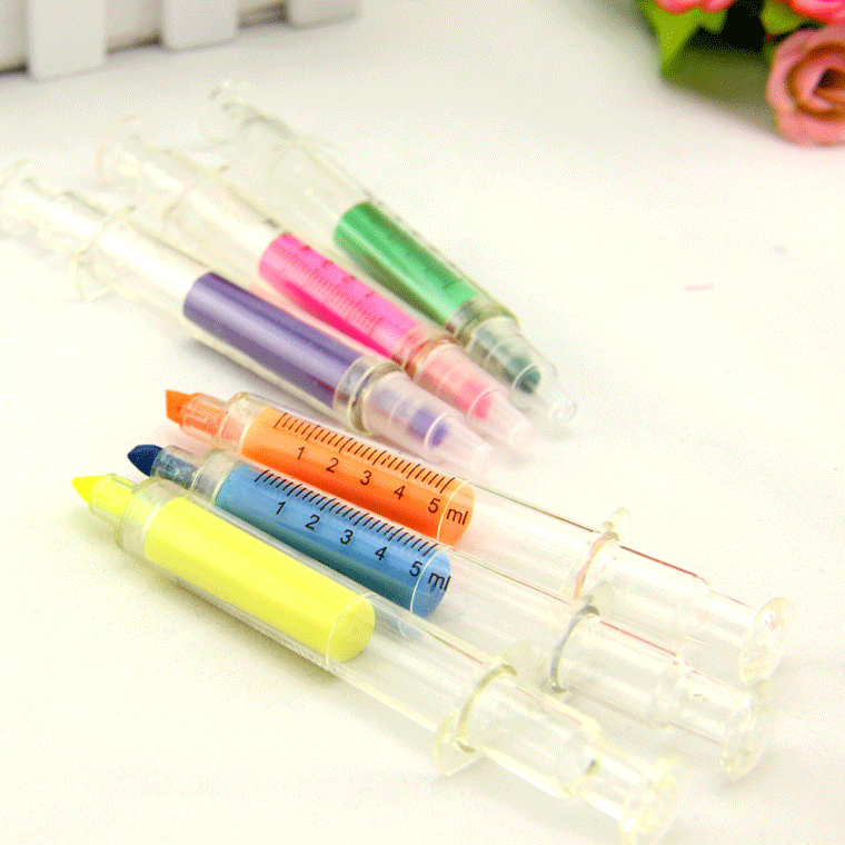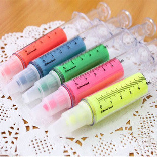 創意可愛針筒式熒光筆 彩筆 日韓文具批發材 質
