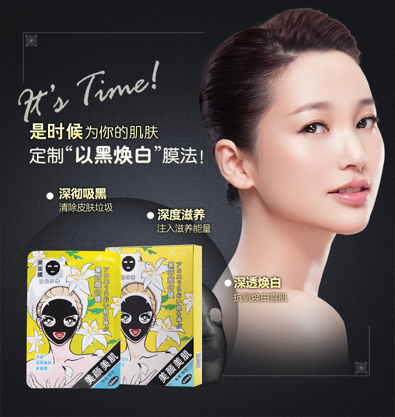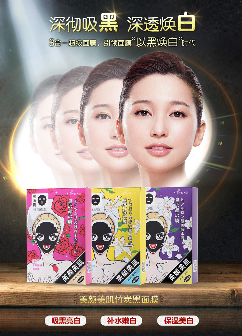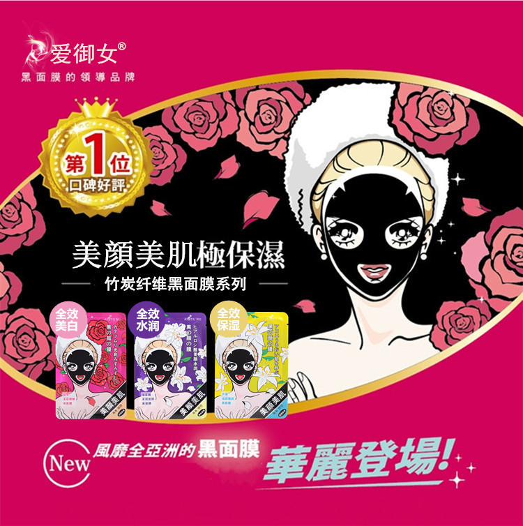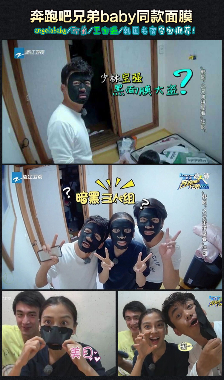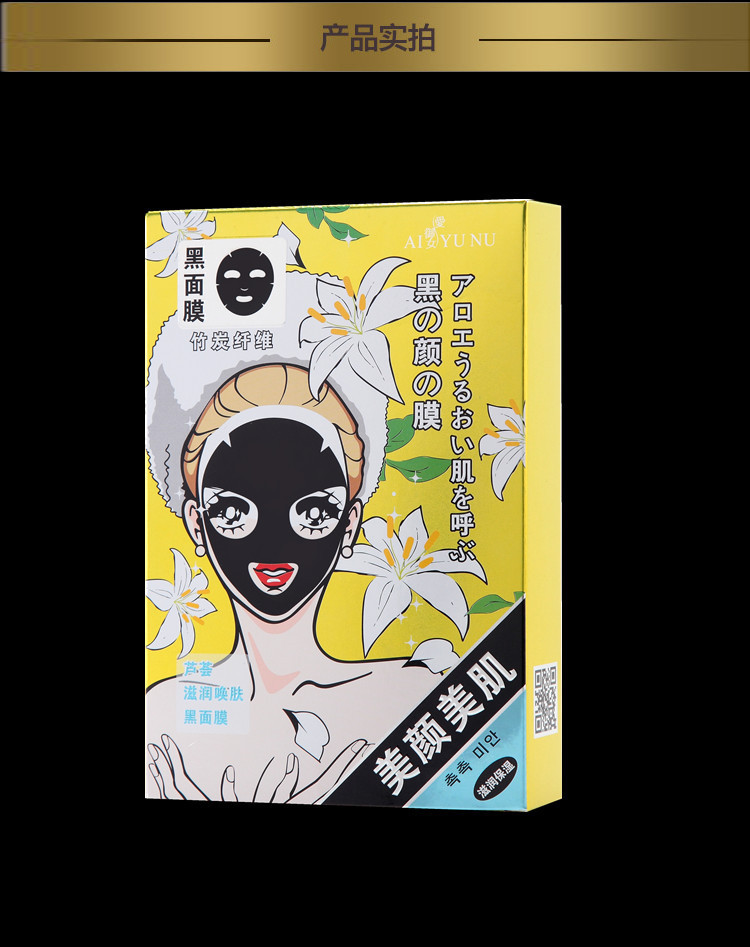 愛御女美顏美肌蘆薈竹炭面膜 奔跑吧兄弟同款黑面膜滋潤美白5片裝