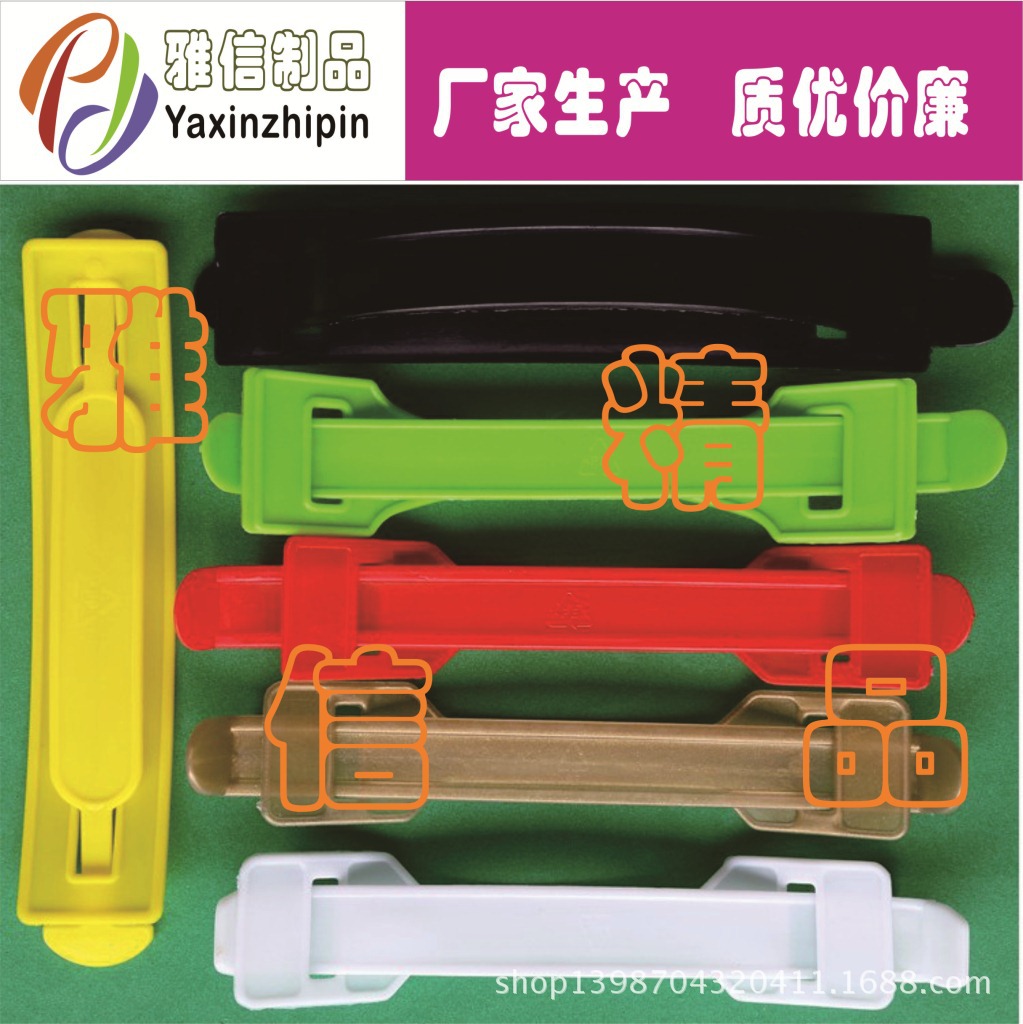 我公司專業生產銷售各種彩盒、彩箱、手提袋/米袋/面粉袋配套專用塑料提手,塑膠提手扣、手提扣、手挽扣、手提把、手挽帶、紙箱扣環/扣手、拎手,各式塑膠吊扣、掛鉤、紙袋手挽,米袋扣手,面粉袋扣手等產品多達八十多款;“質量好,交貨快,價格平”同時承接樣板開發設計,加工等業務;歡迎來電咨詢。