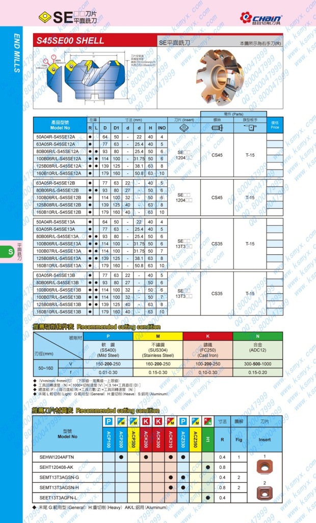 SE平面銑刀盤80B06R-S45SE12B/80B06L-S45SE12B益詮刀具