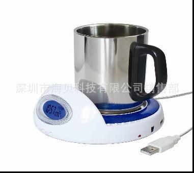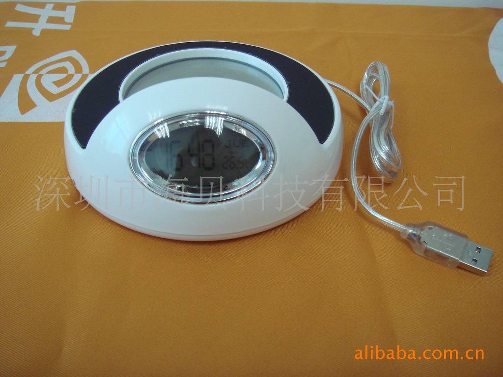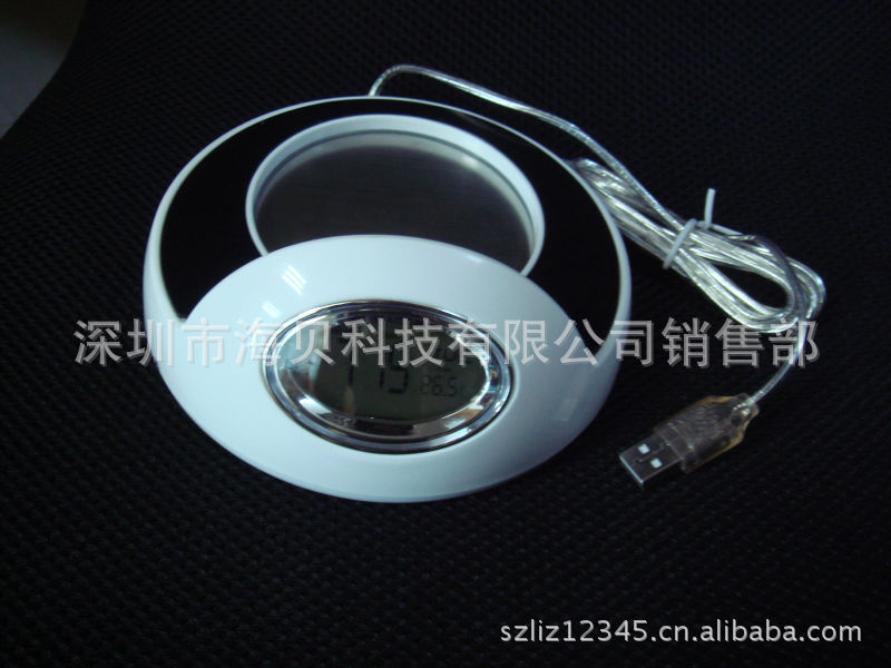 電子鐘萬年歷USB4口HUB加熱保溫杯墊 多功能加熱杯墊(圖)