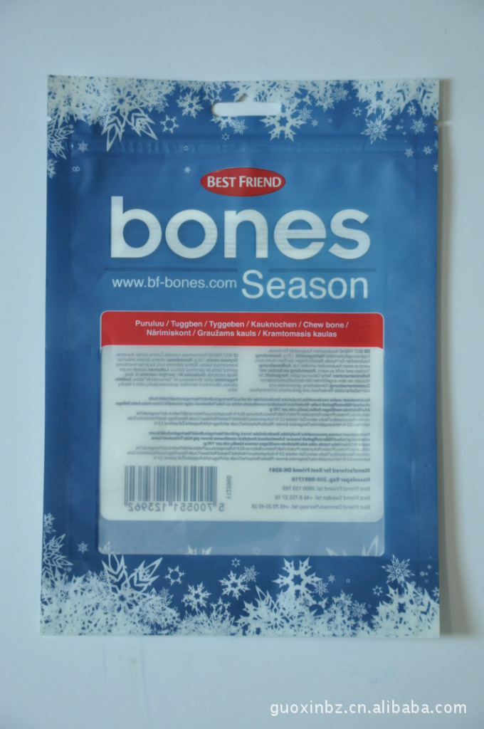 產品特性:此包裝采用的是PA膜復合PE膜,空氣隔絕性好,耐穿刺,有利于食品的保存,避免食品收到外界的污染