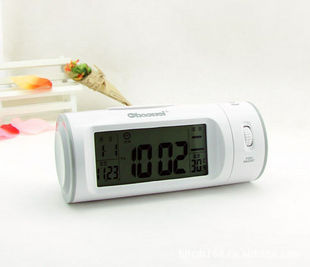 1: 在產品附近輕輕拍一下手掌,或輕敲擺放產品的臺面,或輕觸產品任何部位,背光燈立即點亮,同時投影燈也點亮,可將時間投影在墻壁或其它物體上;