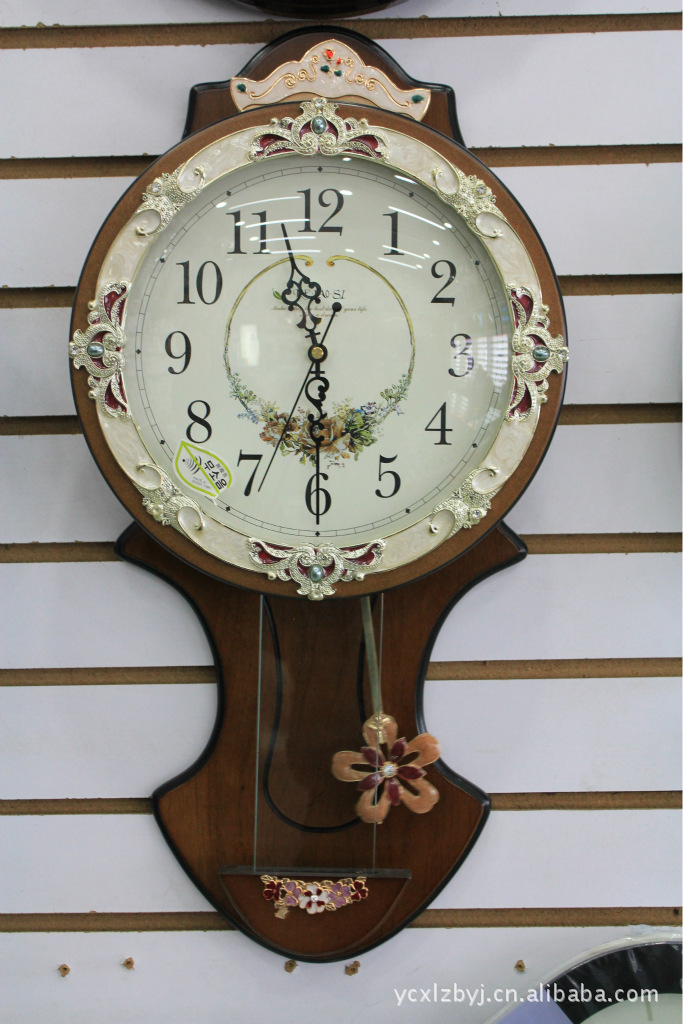 克勞斯高檔歐式田園實木掛鐘 創意時尚簡約搖擺時鐘靜音石英鐘表