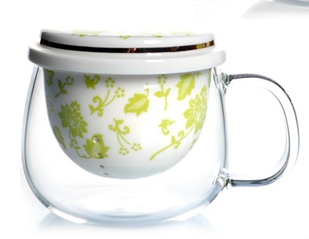 【廠家直銷】玻璃杯帶陶瓷內膽三件杯 瓷膽過濾帶蓋茶杯批發