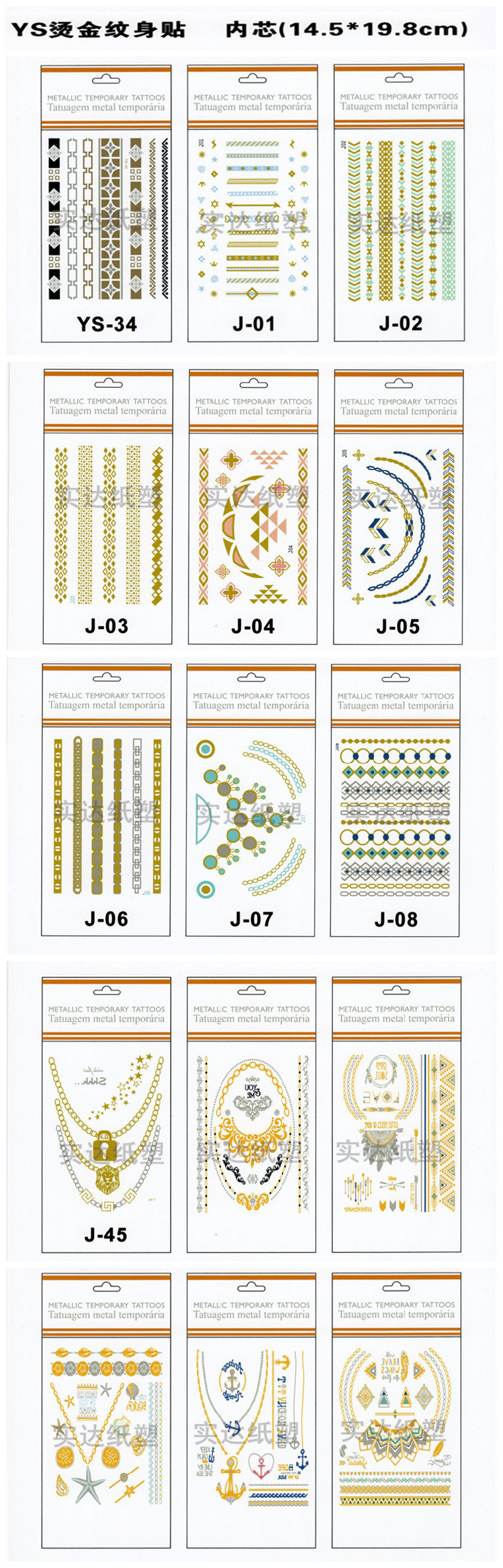 廠家直銷 燙金燙銀紋身貼 金屬紋身貼 奢華時尚個性防水紋身貼