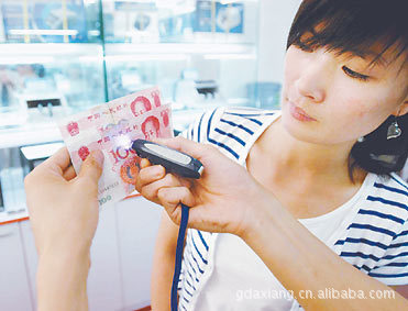 1、熒光 :使用時只要按住開關并將紫外光對準要辨別的鈔票,若是真鈔,則能清楚的看出其反射的明亮熒光圖或幣值