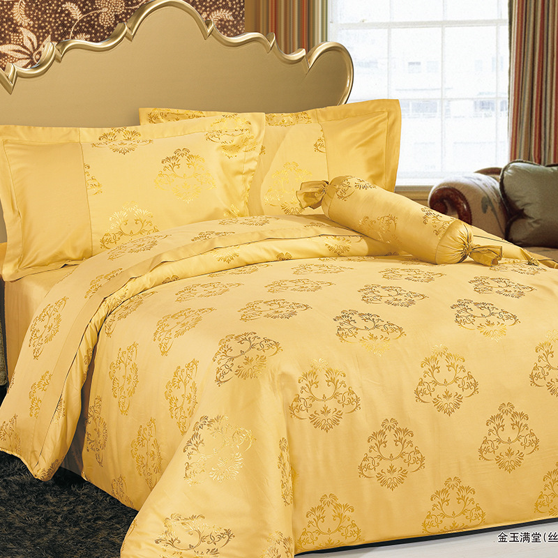 廠家直銷 高檔絲棉大提花布 金玉滿堂 床品四六件套 提花家紡布料