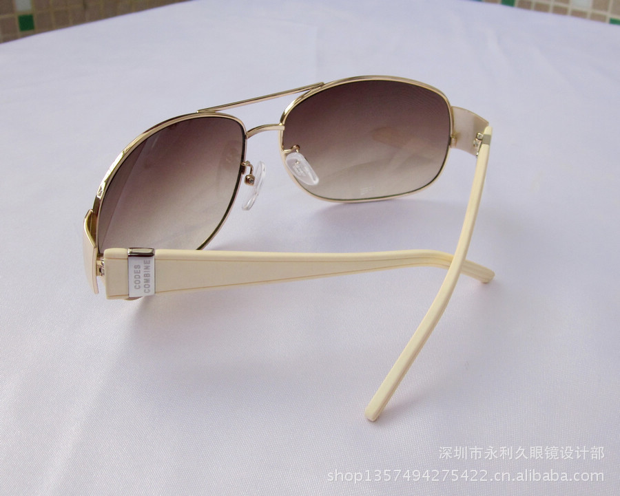 乳白色大框金屬太陽眼鏡 防紫外線蛤蟆太陽墨鏡 外貿高品質