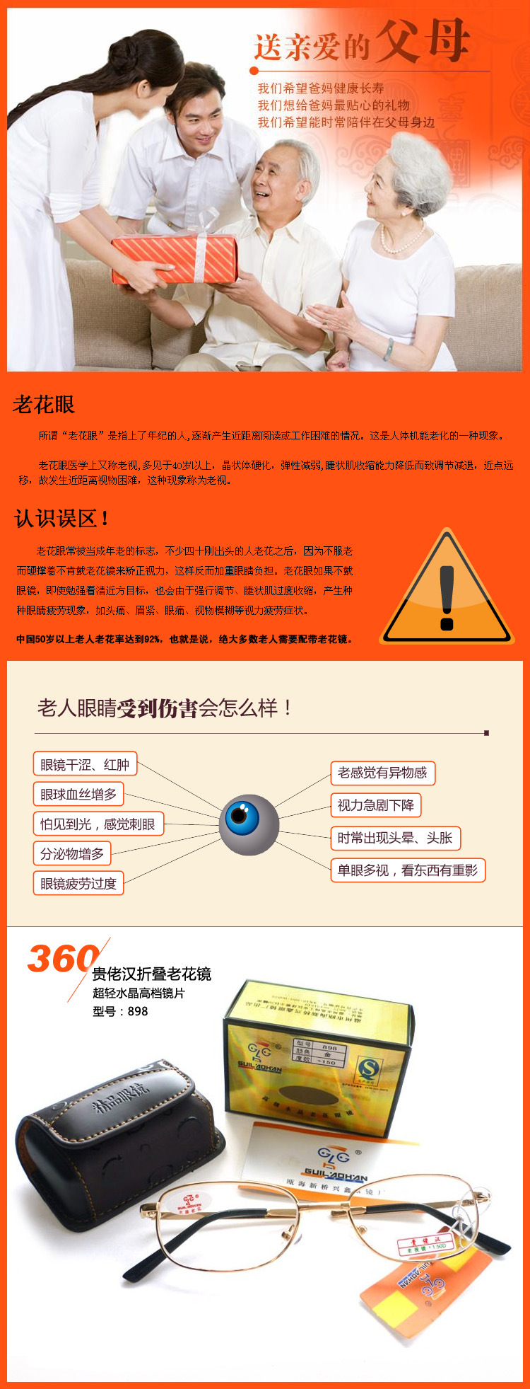貴佬漢系列老花鏡采用了水晶材質,按照國家GB13511-1999執行標準裝配成鏡,使中老年朋友
