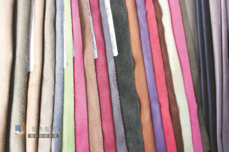 超細纖維海島絲原料與氨綸絲經編制成,通過高科技的染色、開纖、起絨工藝精制合成。