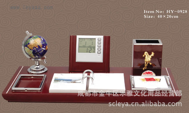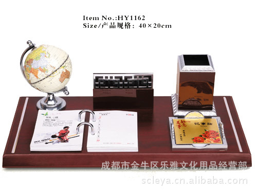 HY1161紅木臺歷【尺寸】成品尺寸:400mm×200mm 廣告尺寸:400mm×20mm包裝:單個彩盒包裝?!九渲谩扛呒塒VC地球儀,攜手共贏名片盒,馬到成功長方形筆筒,便簽盒、記事便簽,4色彩印銅版紙54張記事周歷,周歷配圖案內容:心靈健康 等?!镜鬃坎馁|:高級進口密度板。裝裱:亞光工藝木紋,兩側鑲嵌銀邊條?!娟P聯】按成品尺寸標準配置劃分,本系列產品共十三款:HY1157、HY1158、HY1159、HY1160、HY1161、HY1162、HY1163、HY1165、HY1166(以及HY0920、HY0921、HY0922、HY0923、HY0925、HY0926、HY0927、HY0928、HY0929)?!窘Y構】大方、簡潔、超凡不俗更體現大家風范的匠心獨到,本中號紅木臺歷系列,款款濃縮精彩,充分展現了傳統文化的魅力精髓,本系列產品以工藝技術、精選優質材料制作而成,或典雅或別致、大方或實惠,紅木臺歷的經典與非凡,是辦公居家、商務饋贈、廣告禮品的佳品。400mm×200mm系列和340mm×200mm系列的款式非常豐富,包括相關產品,標準款式有36種,非常便于客戶的選擇本系列紅木臺歷的【主要配置】的物件有:鍍金石英表:進口機芯、電池。不銹鋼廣告牌:可按客戶要求精雕各種文字、圖案廣告。雕花水晶既可做觀賞牌匾也可以作紙鎮,民間更有說法水晶能給人帶來好運。水晶內,也可以根據客戶的要求制作LOLO?;顒拥呐_歷芯是一頁七天的一共五十四張,可以年年更換使用。臺歷芯配有一些勵志佳句、或唐宋古詩名句等內容,既可觀賞又可豐富知識更可感悟人生真諦,一舉多得。鑲嵌的鈦金鏡面不銹鋼面板,將現代感組合其中,即增加觀賞性,更增加華麗感。筆筒,用于放置筆、剪刀等。其造型,主要采用方形、圓形、橢圓形、長方形、地球儀形等,上面雕刻或者絲印或者鑲嵌主要有:鏤空雕花、馬到成功、萬年歷、蘭花、財富之門、……等等,款式和內容可謂琳瑯滿目。白色的便箋紙便于隨時記事。五星紅旗是國家和平安寧人民安康團結的象征。大方自信顯示自我風范、自身尊貴的名片座款式也非常豐富,均可滿足不同客戶的要求。擺件也有很多:一帆風順、攜手共贏、天安門、鍍金龍魚、鵬程萬里、開拓進取紅牛,互聯時代、玉兔招財等等,有些擺件具有名片盒、名片夾等功能,可謂一用多能、考慮入微?!靖拍睢窟@里,特別引用慕木木的《優雅的詩、優雅的你》,獻給新老客戶。 巨蟹座——《青春》 所有的結局都已寫好 所有的淚水都已啟程 卻忽然忘了是怎么樣的一個開始 在那個古老的不再回來的夏日 無論我如何的去追索 年輕的你只如云影掠過 而你微笑的面容極淺極淡 逐漸隱沒在日后的群嵐 遂翻開那發黃的扉頁 命運將它裝訂得極其拙劣 含著淚 我一讀再讀 卻不得不承認 青春是一本太倉促的書?!娟P聯】按成品尺寸標準配置劃分,本系列產品共十三款:HY1157、HY1158、HY1159、HY1160、HY1161、HY1162、HY1163、HY1165、HY1166(以及HY0920、HY0921、HY0922、HY0923、HY0925、HY0926、HY0927、HY0928、HY0929)?!窘Y構】大方、簡潔、超凡不俗更體現大家風范的匠心獨到,本中號紅木臺歷系列,款款濃縮精彩,充分展現了傳統文化的魅力精髓,本系列產品以工藝技術、精選優質材料制作而成,或典雅或別致、大方或實惠,紅木臺歷的經典與非凡,是辦公居家、商務饋贈、廣告禮品的佳品。索。