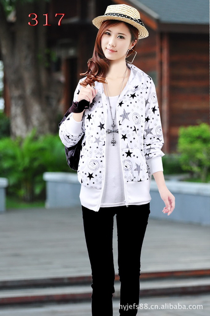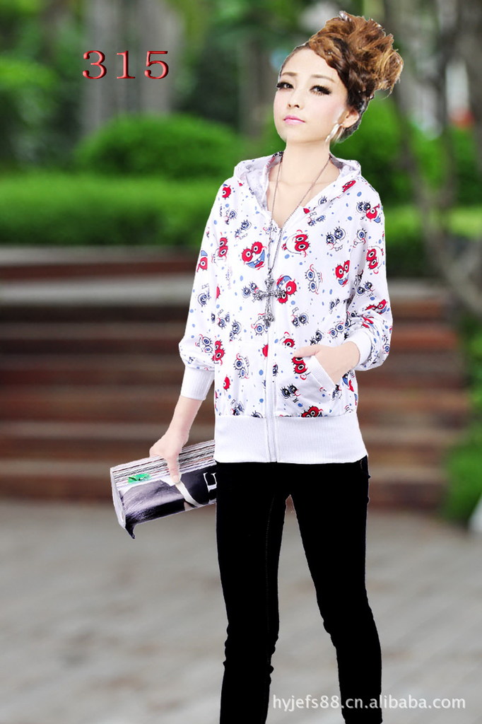 工藝:全面時尚印花,帶拉鏈,連帽,衣袖口及口袋處均有螺紋設計。