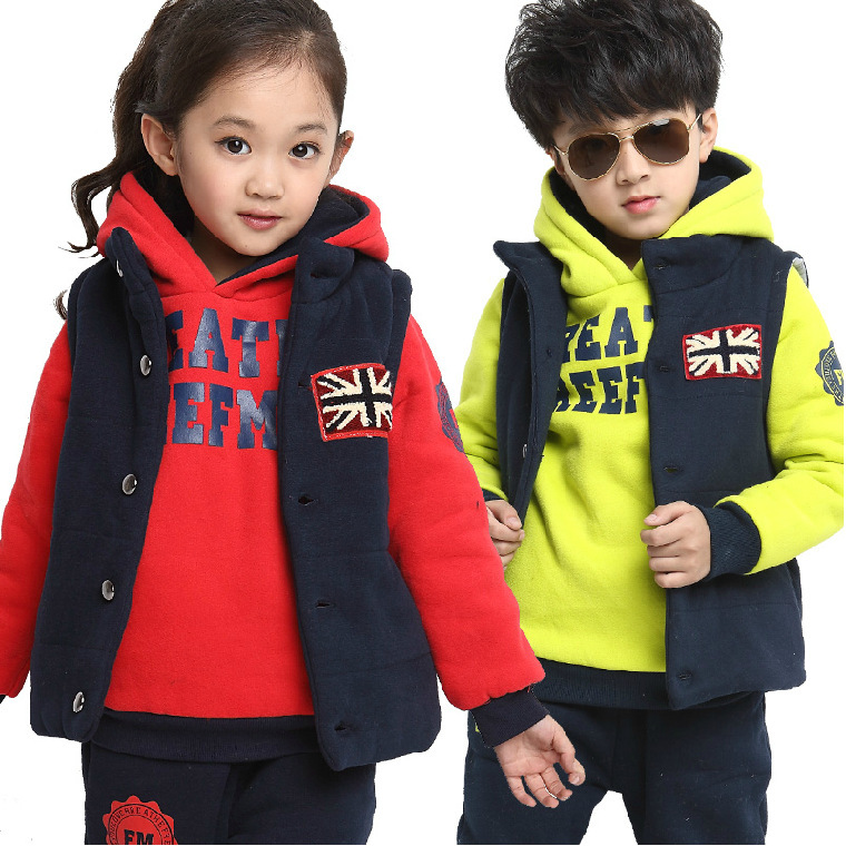 冬款韓版童裝 童套裝男童女童兒童加厚衛衣三件套衛衣套裝批發價¥85.00