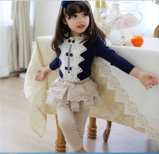 韓版原單2014秋裝新款純棉長袖蕾絲蝴蝶結中小童打底衫外貿童裝批發價¥25.00當季熱賣more