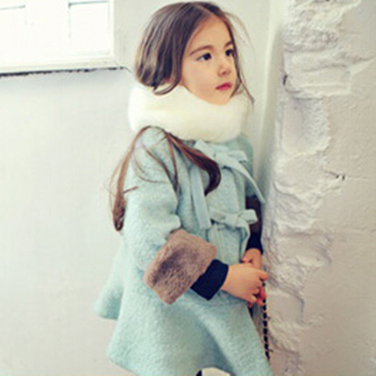 秋冬韓版童裝女童呢大衣長款羊圈呢加絨加厚呢子大衣送毛領批發價¥73.00