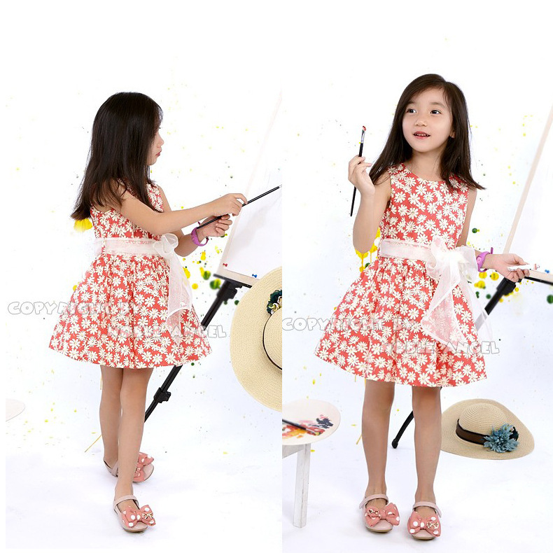 韓版夏季童裝 2014新款女童梳織背心連衣裙 兒童全棉花朵印花童裙